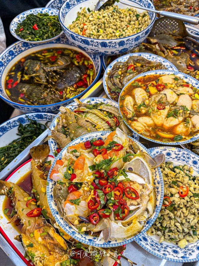 :“潮汕毒药”,指生腌的海鲜,如虾、蟹、血蛤等,口感冰爽滑嫩,风味独特(建议谨慎尝试)。