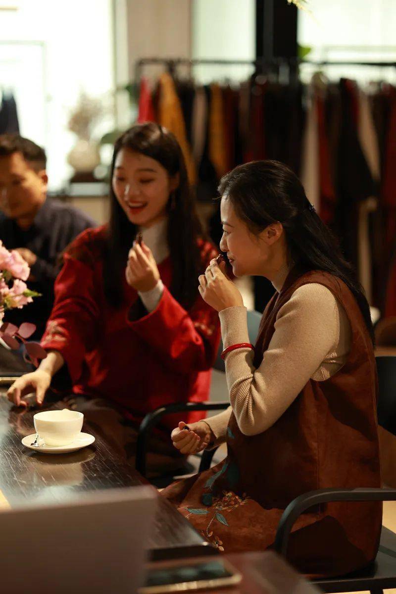 与咖啡沙龙一起进行的还有“吉祥羽儿”品牌11月新品试穿活动,大家穿着新款的羽衣,捧着香浓的咖啡,一起赋予这个秋日午后以温暖色彩。