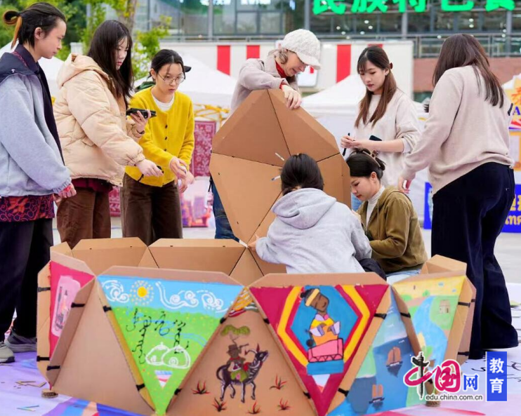 “丹青绘寰宇,一笔一文明。”当日上午9时,在德国外籍专家IMKE LOHMANN指导下,20余名中外青年开始进行“‘Festival’艺术共创”项目,共同绘制以节庆“Festival”为主题的艺术装置。作为本届交流节的核心亮点之一,该项目包含了马来西亚、老挝、泰国、巴基斯坦等20余个国家的特色花纹和人文符号,通过墨水和涂鸦的艺术表达相互交织,每一笔创作都是文化理解的生动诠释,每一次落笔都满含对跨文化交融的赤诚热爱。据悉,此次集体创作的艺术装置成品,后续也将在成都东盟美术馆展出,成为中国-东盟艺术学院校园国际化的特色打卡点,让交流节的文化影响从“单日活动”延伸至“长期传播”,真正打造可复用、可延续的文化传播地标。